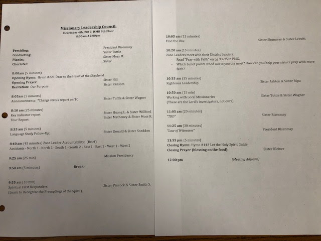 THIS IS THE MISSION LEADERSHIP COUNCIL AGENDA FOR YESTERDAYS MEETING